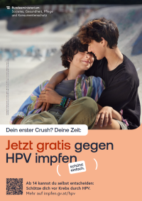 Jetzt gratis gegen HPV impfen. Schützt einfach. Dein erster Crush. – Plakat ↗