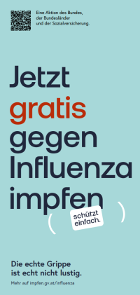 Influenza-Impfung: Jetzt gratis gegen Influenza impfen. Schützt einfach. - Texplakat (A3) ↗