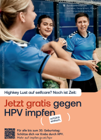 Jetzt gratis gegen HPV impfen. Schützt einfach. Highkey Lust auf selfcare? Noch ist Zeit. – Plakat ↗