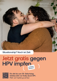 Jetzt gratis gegen HPV impfen. Schützt einfach. Situationship? Noch ist Zeit. – Plakat ↗